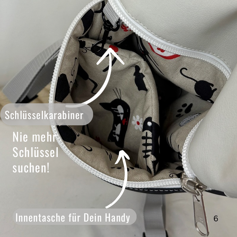 Ich wählte Kunstleder mit Stoff, um ihn peppig zu kreieren.
