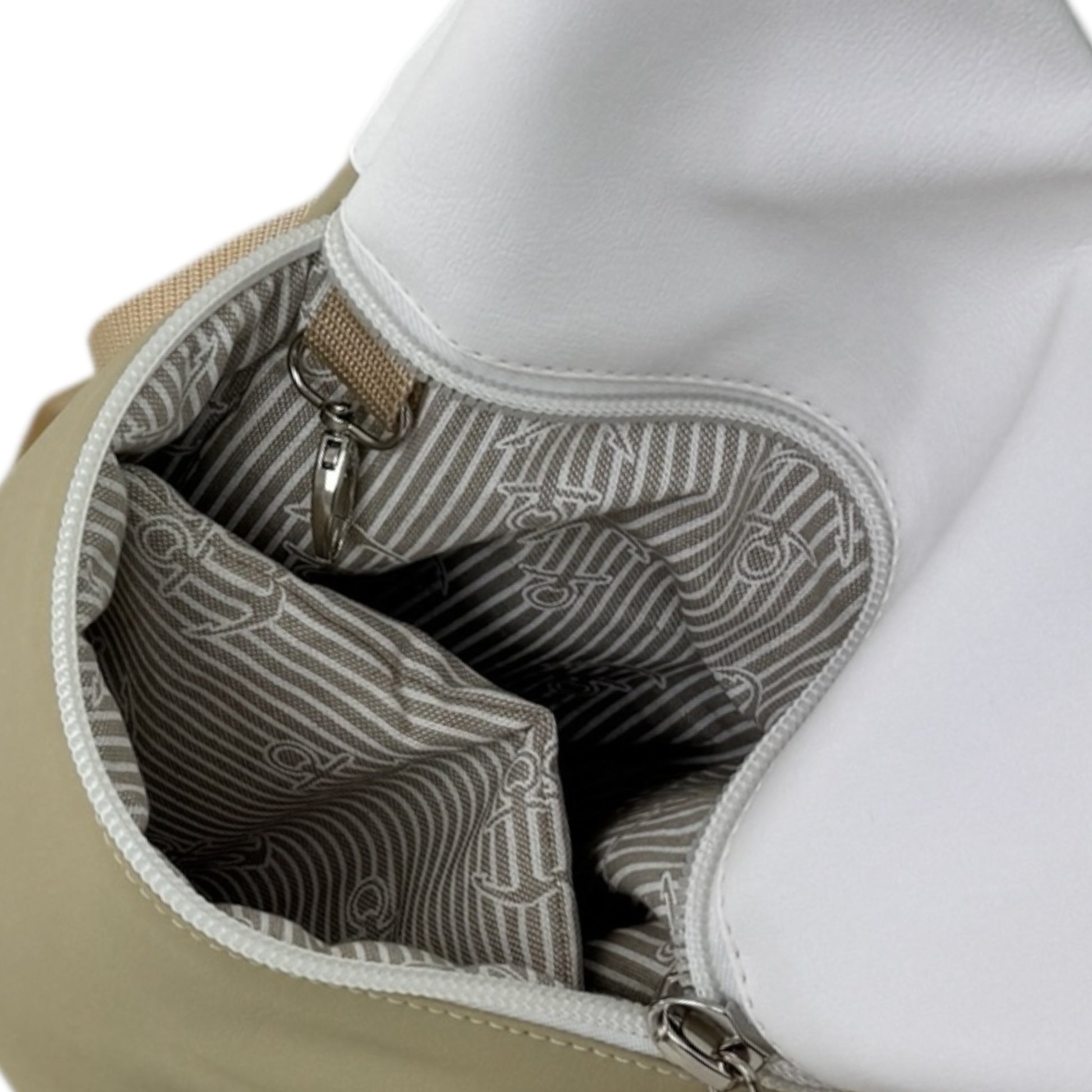 Die Ausschnitt im Nackenbereich sorgt  dafür, dass sich die Gurtenden über die Schultern legen und es somit ein enganliegender Rucksack wird.