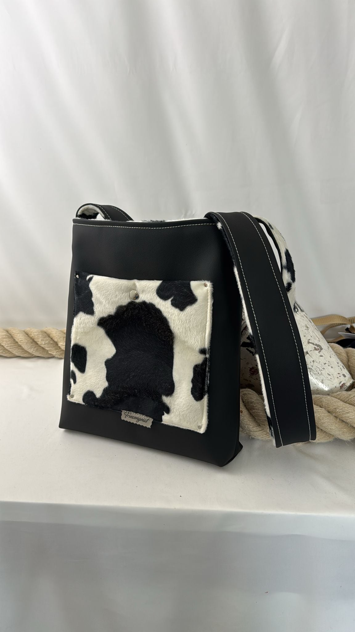 Das robuste Kunstleder hält auch schwerere Lasten aus, während das schlichte, nordische Design zu jedem Outfit passt.
