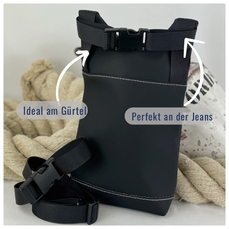 Für unsere Gürteltaschen gelten folgende Maße: ca. 17 cm breit,