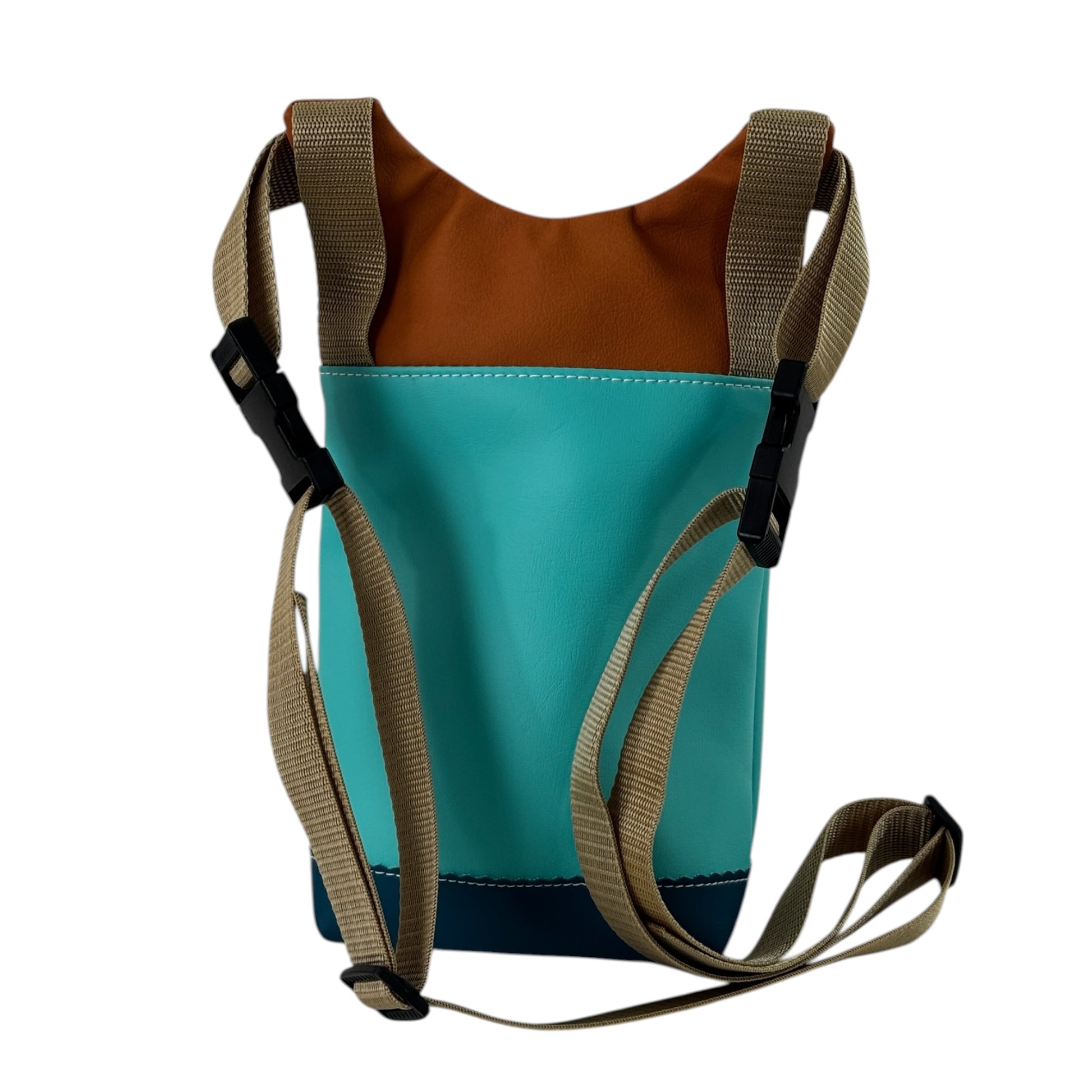 Die Ausschnitt im Nackenbereich sorgt  dafür, dass sich die Gurtenden über die Schultern legen und es somit ein enganliegender Rucksack wird.