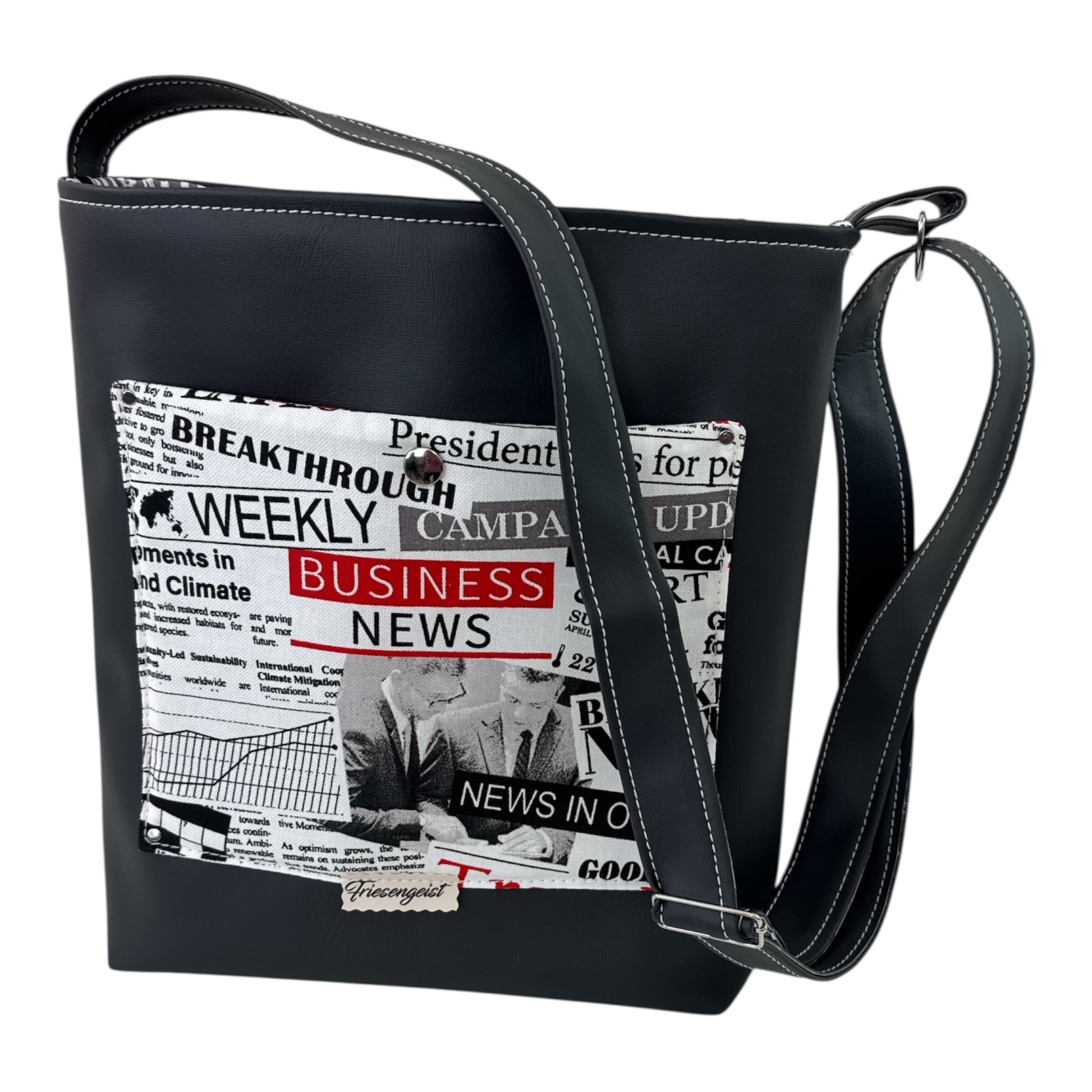 Das robuste Kunstleder hält auch schwerere Lasten aus, während das schlichte, nordische Design zu jedem Outfit passt.